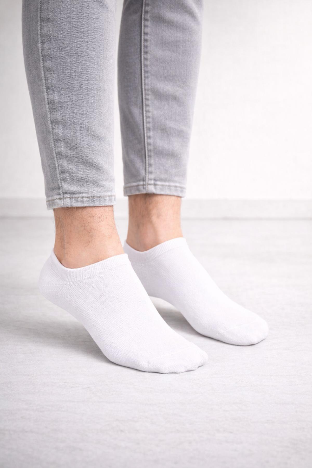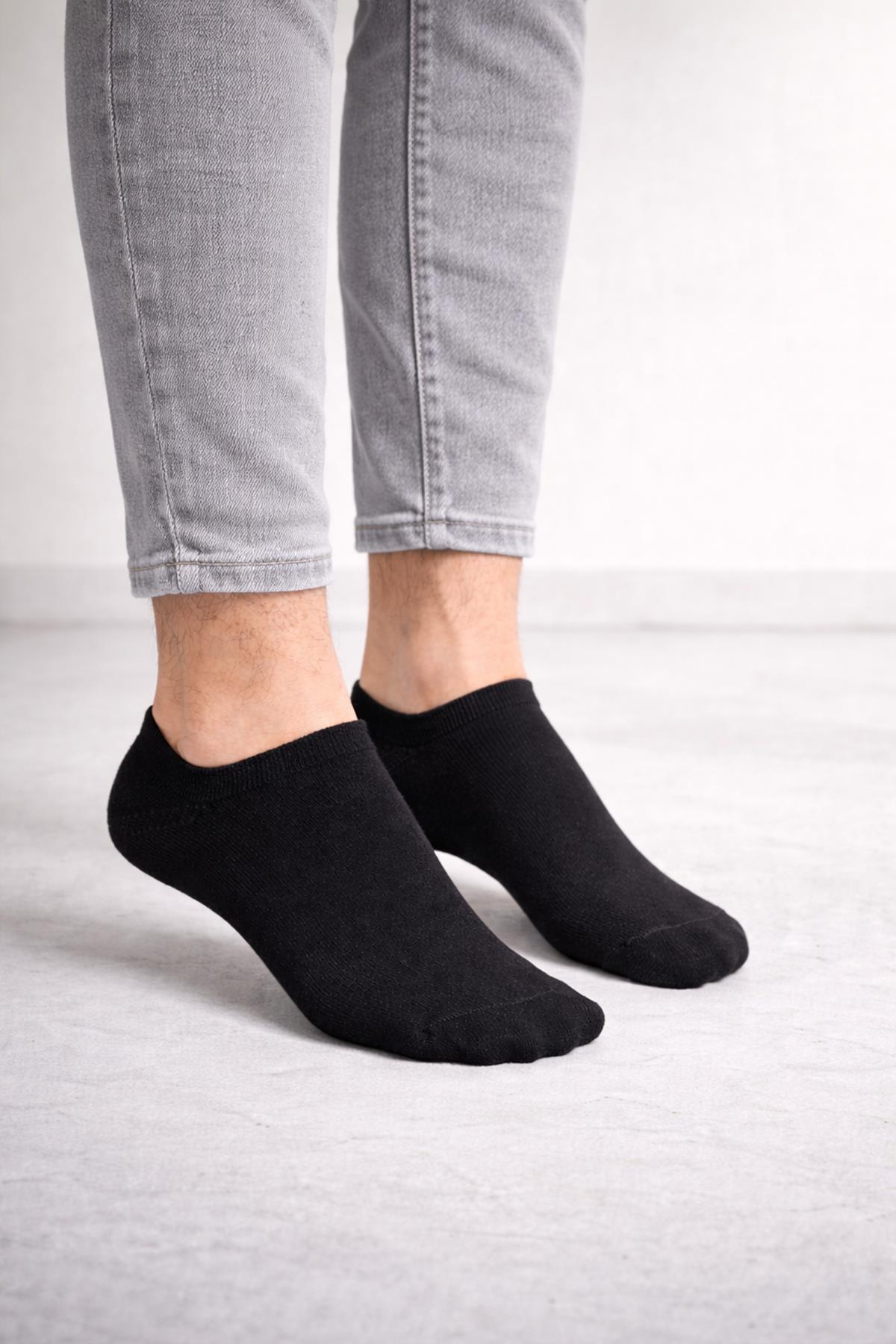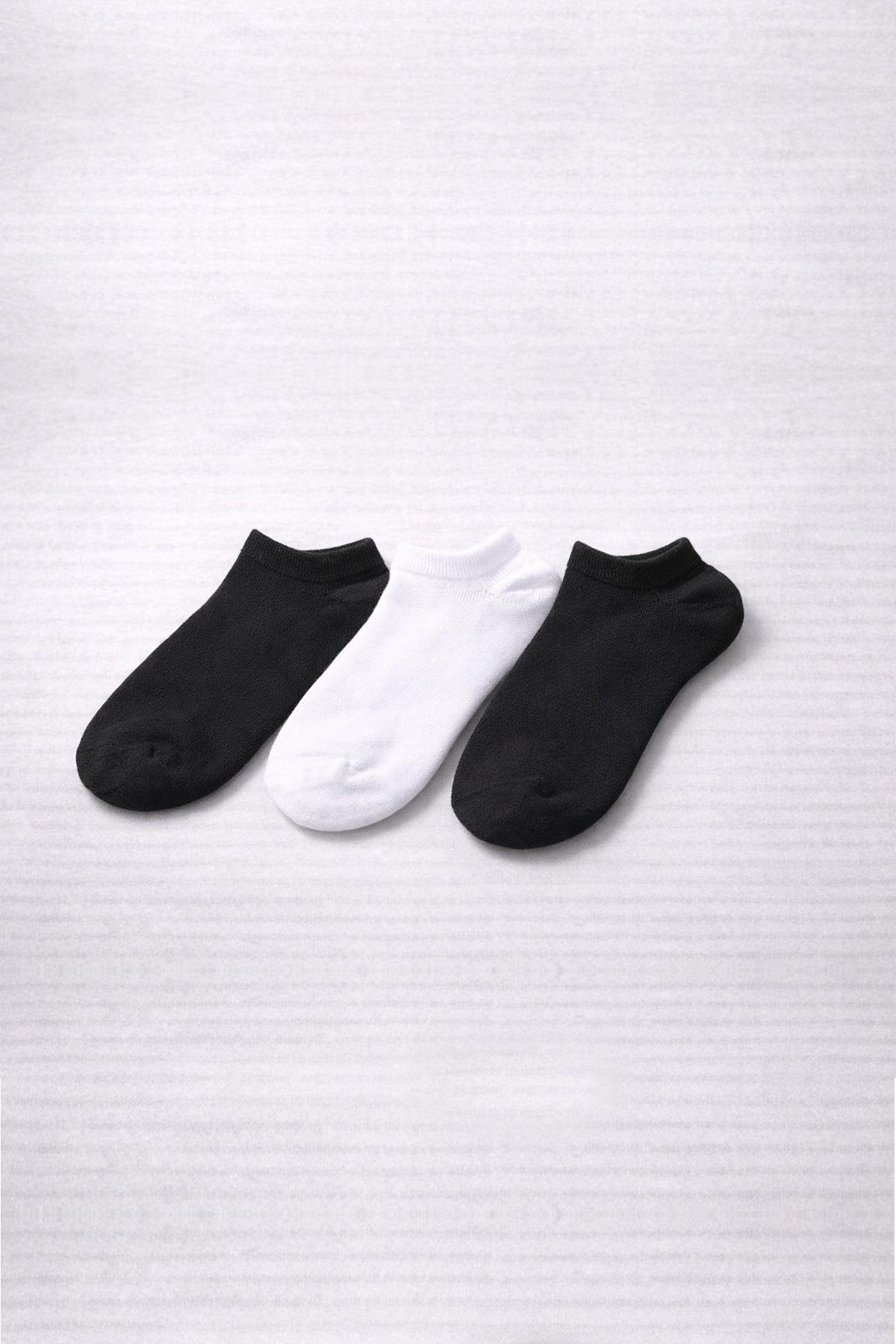 3'lü Paket Erkek Siyah-Beyaz Pamuklu Patik Çorap (2043550267)