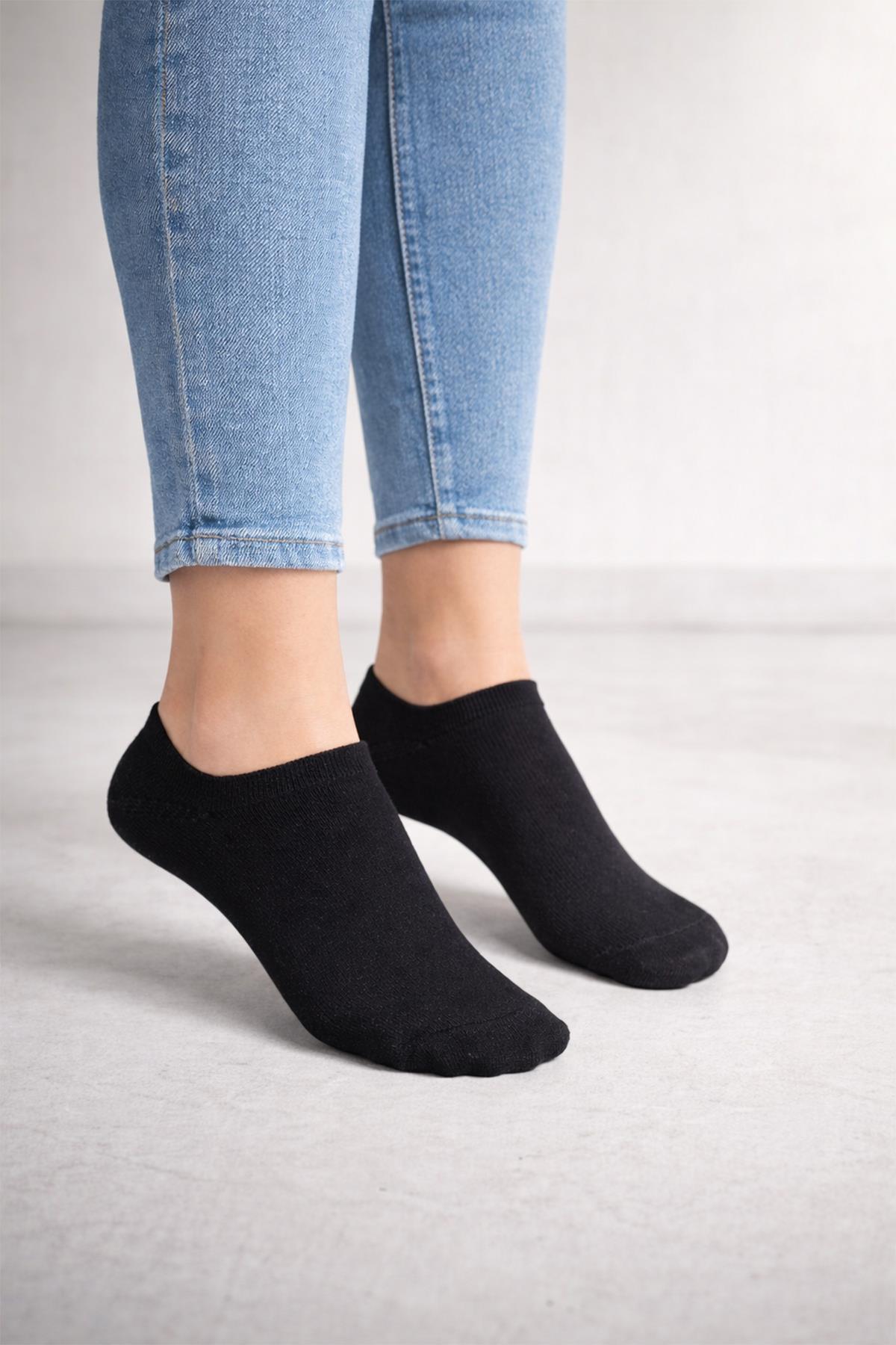 3'lü Paket Kadın Siyah-Beyaz Pamuklu Patik Çorap (2043550266)