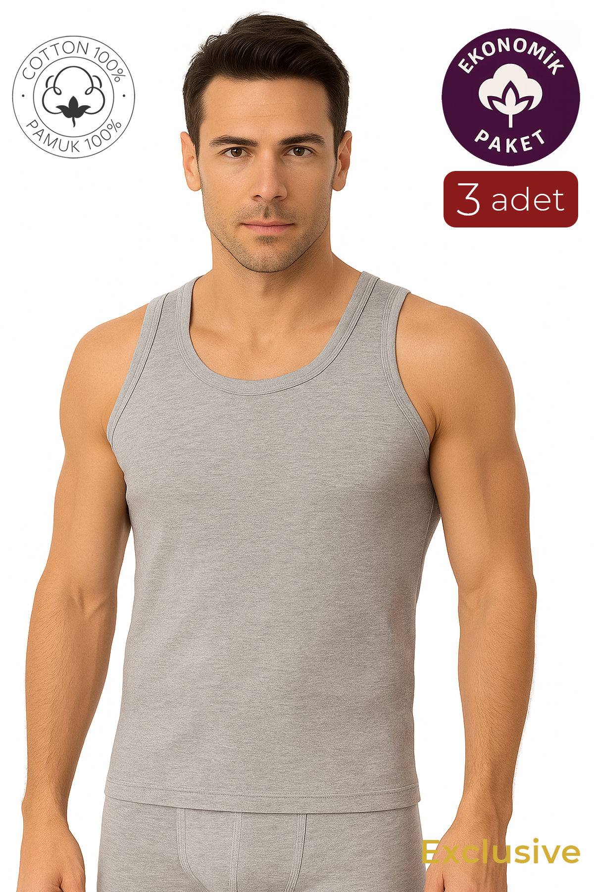 3'lü Paket Pamuklu Ribana Kalın Askılı Erkek Atlet | Gri K0113 (1160300023)