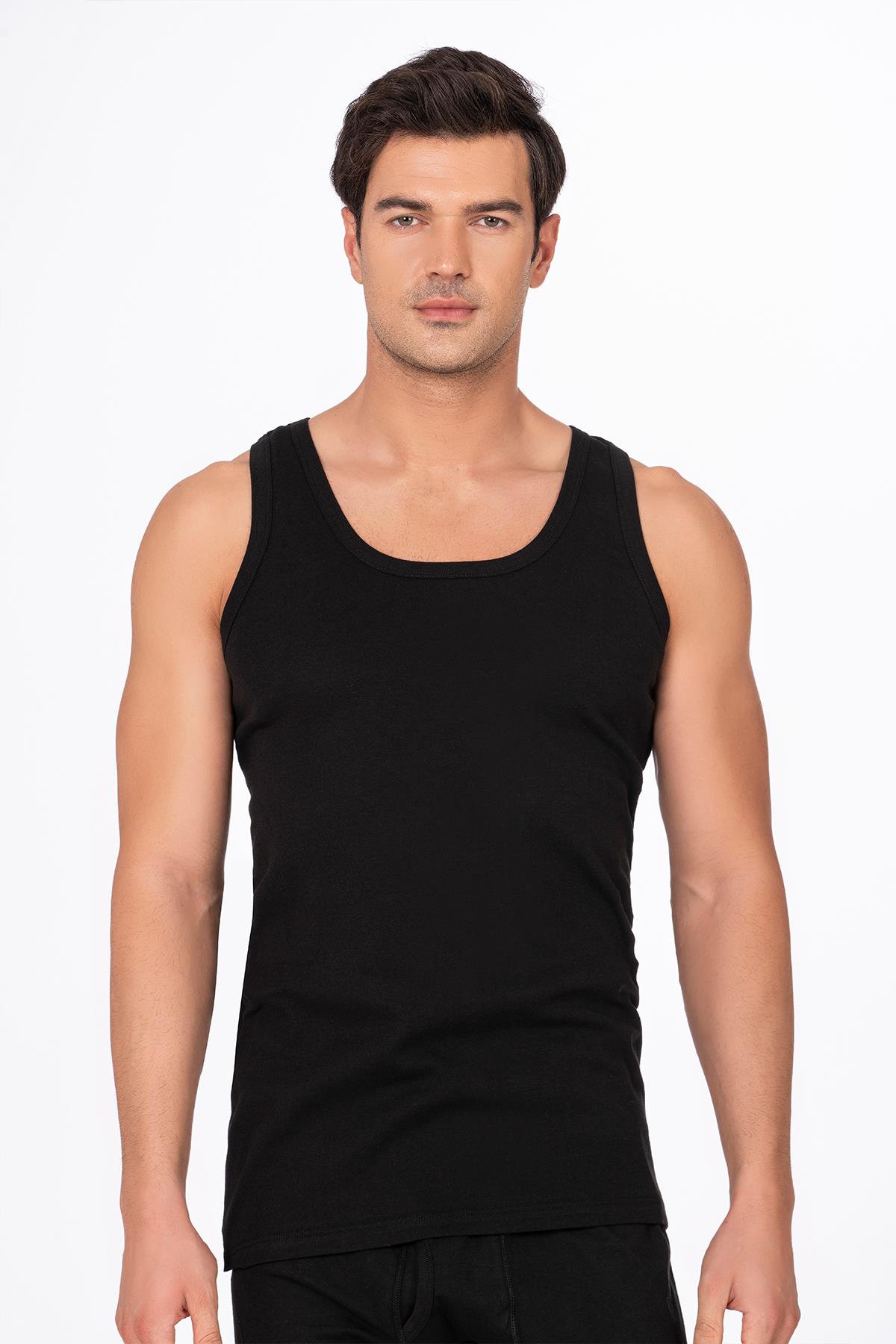 3'lü Paket Pamuklu Ribana Kalın Askılı Erkek Atlet | Siyah K0113 (1160300023)