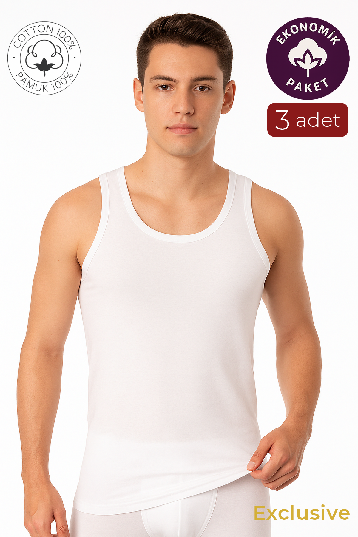 %100 Penye Süprem Pamuk Erkek Klasik Atlet – 3’lü Paket