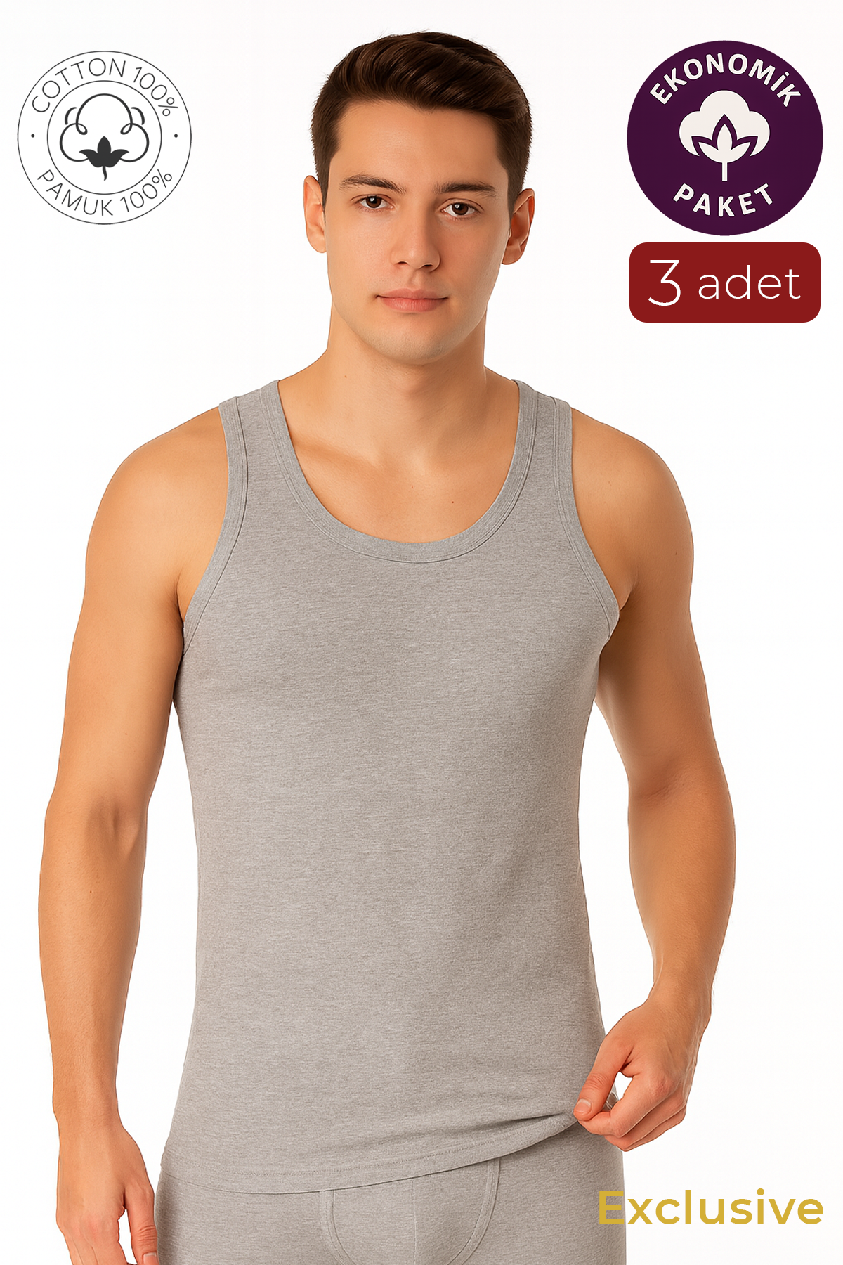 %100 Penye Süprem Pamuk Erkek Klasik Atlet – 3’lü Paket