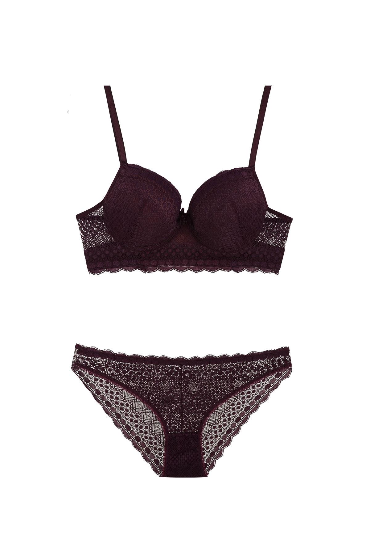 B Kap Dantelli Destekli Sütyen Takım | Mürdüm 238