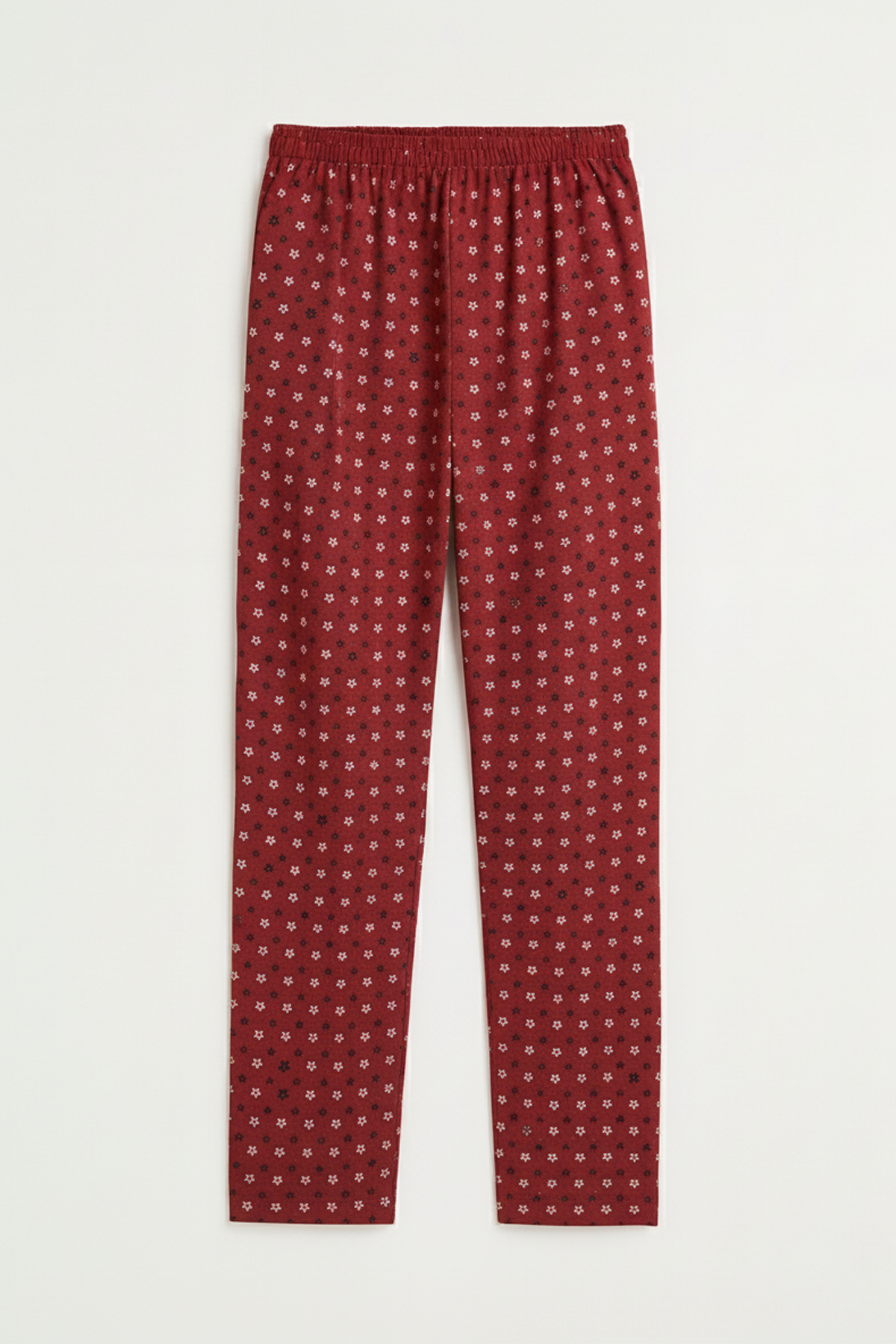 Klasik ekose desenli pijama altı tasarımıyla stil sahibi bir görünüm sunarken, yan cepleri sayesinde günlük kullanım için pratiklik katar.