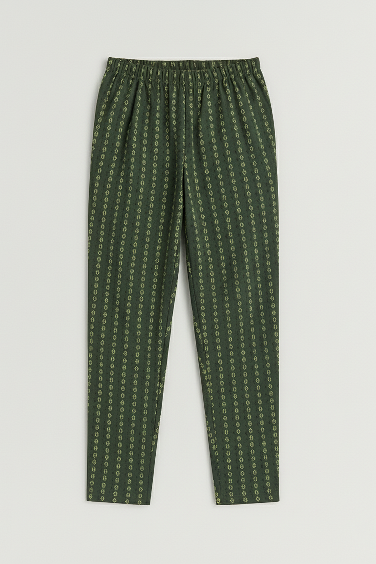 Klasik ekose desenli pijama altı tasarımıyla stil sahibi bir görünüm sunarken, yan cepleri sayesinde günlük kullanım için pratiklik katar.