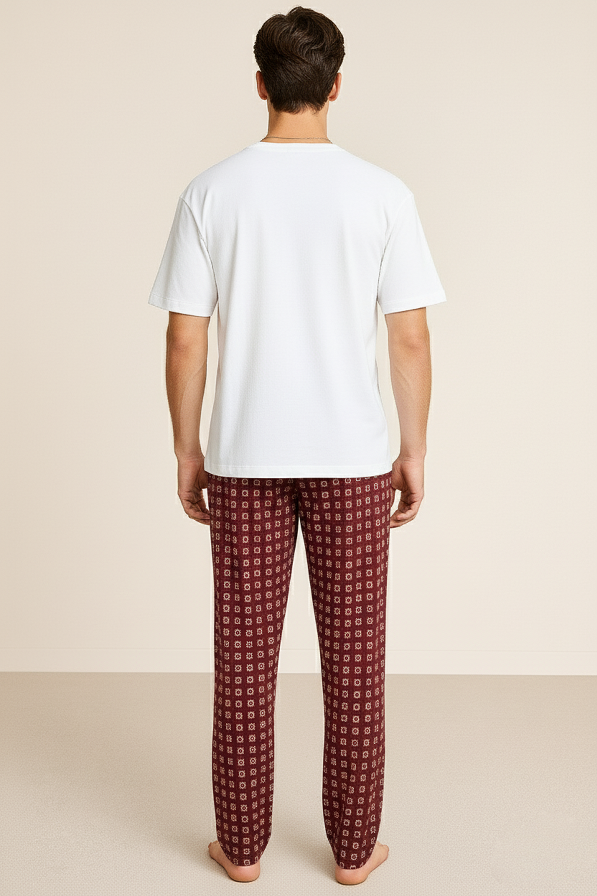 Klasik ekose desenli pijama altı tasarımıyla stil sahibi bir görünüm sunarken, yan cepleri sayesinde günlük kullanım için pratiklik katar.