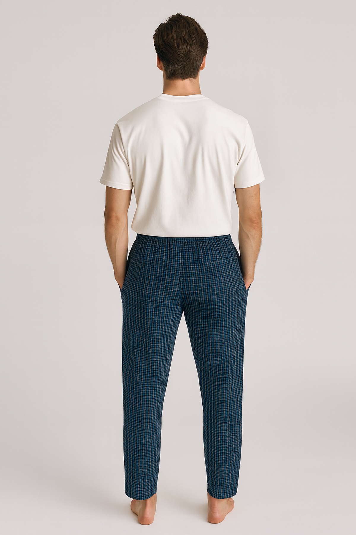 Klasik ekose desenli pijama altı tasarımıyla stil sahibi bir görünüm sunarken, yan cepleri sayesinde günlük kullanım için pratiklik katar.