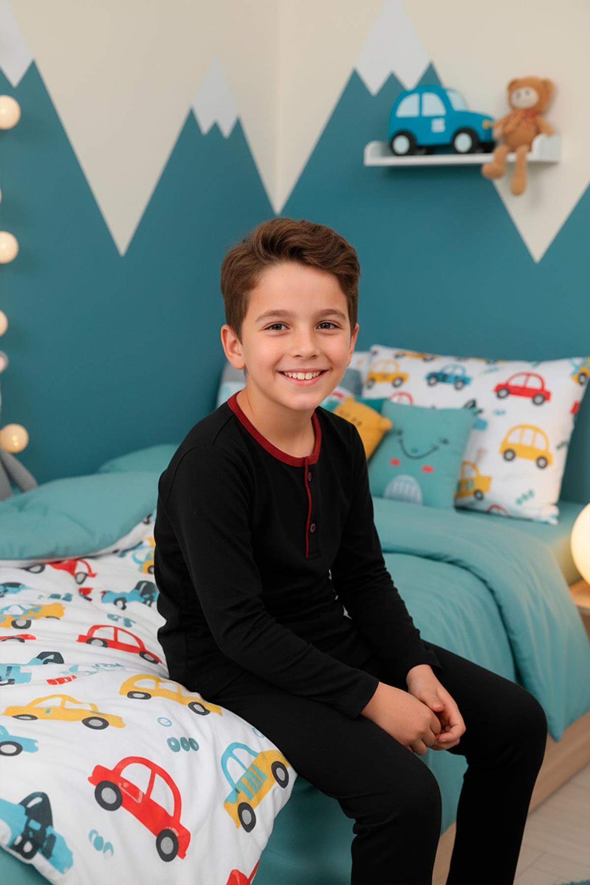 Klasik tasarımı ve rahat yapısıyla öne çıkan erkek çocuk pijama takımı, yumuşak dokusu sayesinde çocukların uyku konforunu artırır.