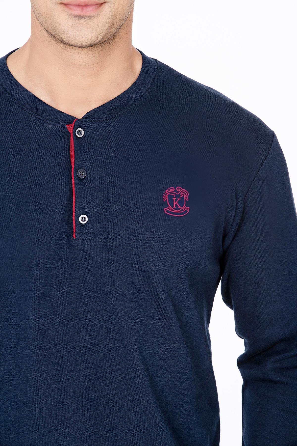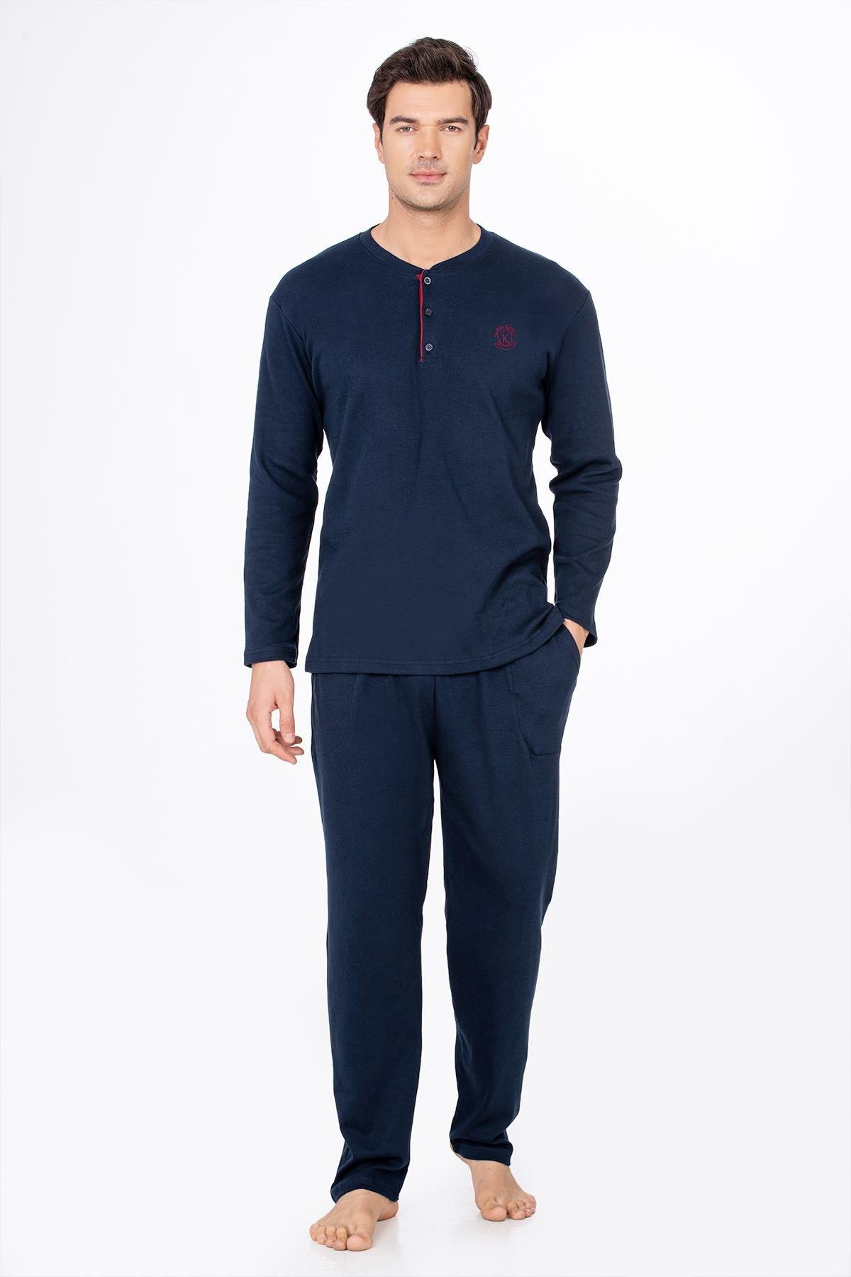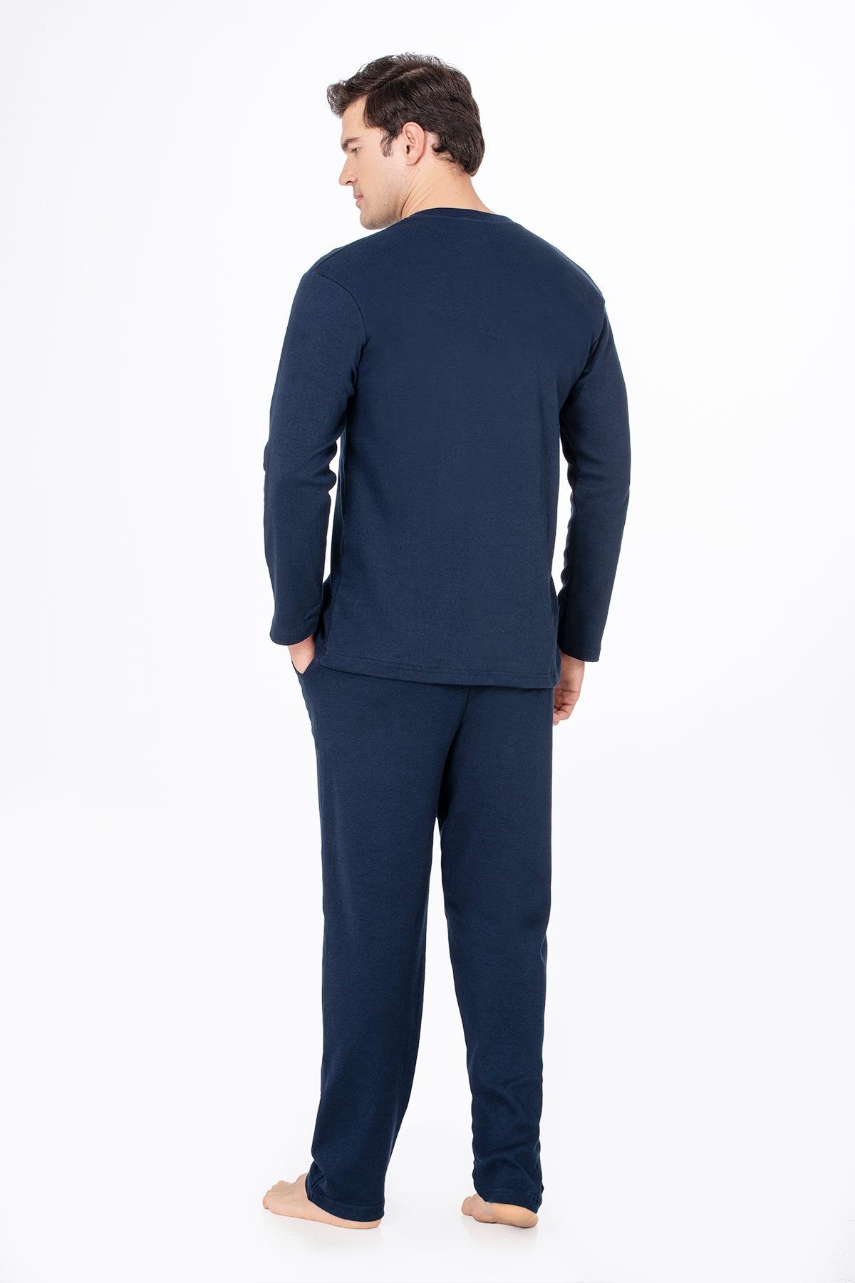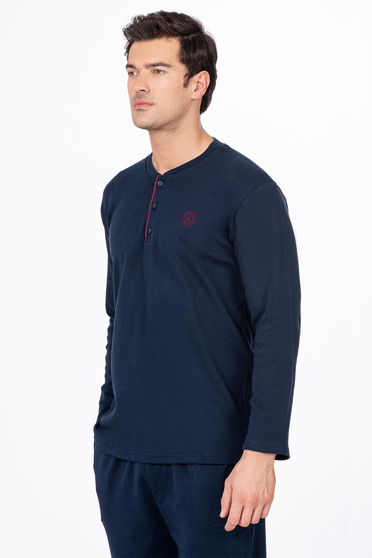 Erkek Düğmeli Yaka Pijama Takımı | Lacivert 031 (1072171458)