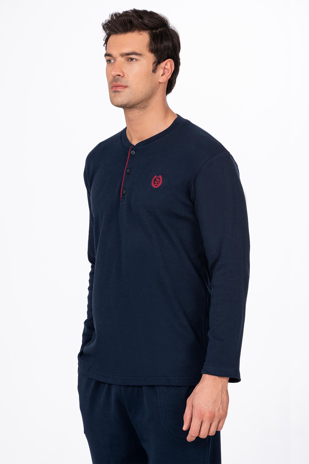 Erkek Düğmeli Yaka Pijama Takımı, sade ve modern tasarımıyla konforu ön planda tutar.