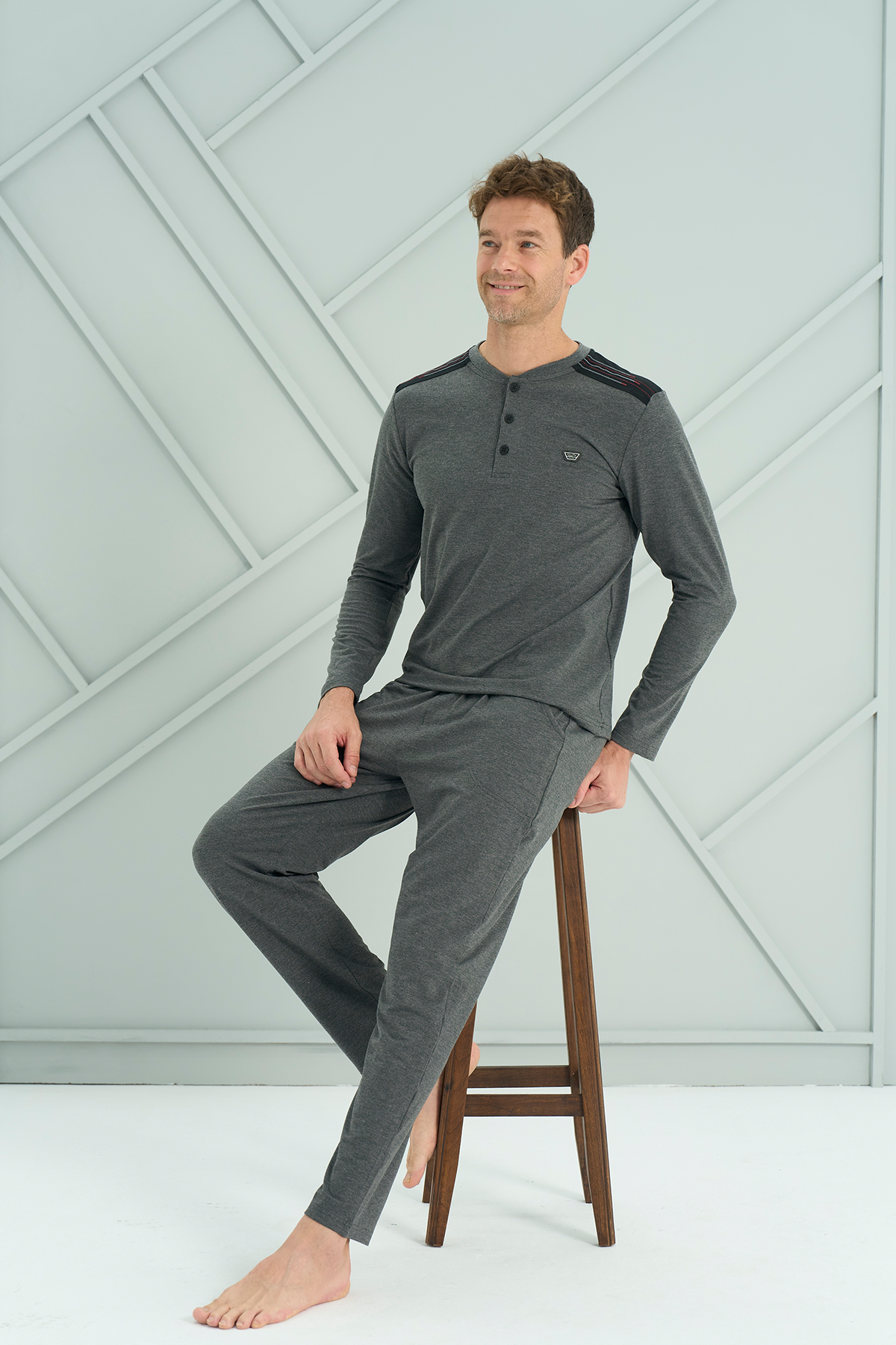 Zamansız rengi ve sade şıklığıyla öne çıkan Erkek İnterlok Genç Önü Patlı Pijama Takımı, konforlu yapısı sayesinde ev giyimi ve uyku için ideal bir tercihtir.