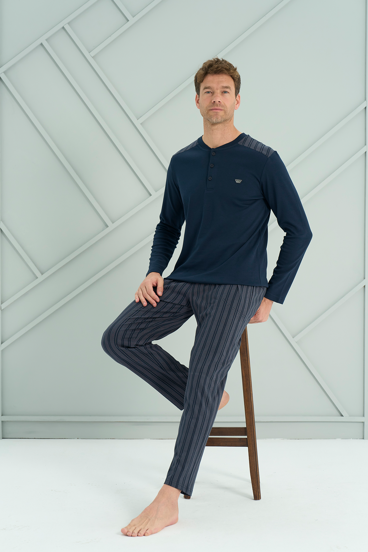 Zarif detayları ve rahat yapısıyla öne çıkan Erkek İnterlok Genç Önü Patlı Pijama Takımı, ev giyiminde şıklığı ve konforu bir arada sunar.