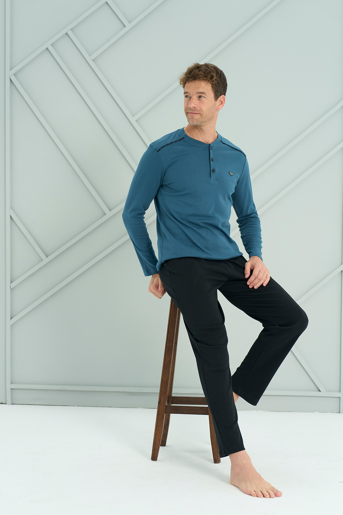 Rahatlık ve şıklığı bir arada sunan Erkek İnterlok Genç Önü Patlı Pijama Takımı, yumuşak dokusu ve modern tasarımıyla ev giyimine konforlu bir alternatif sunar.