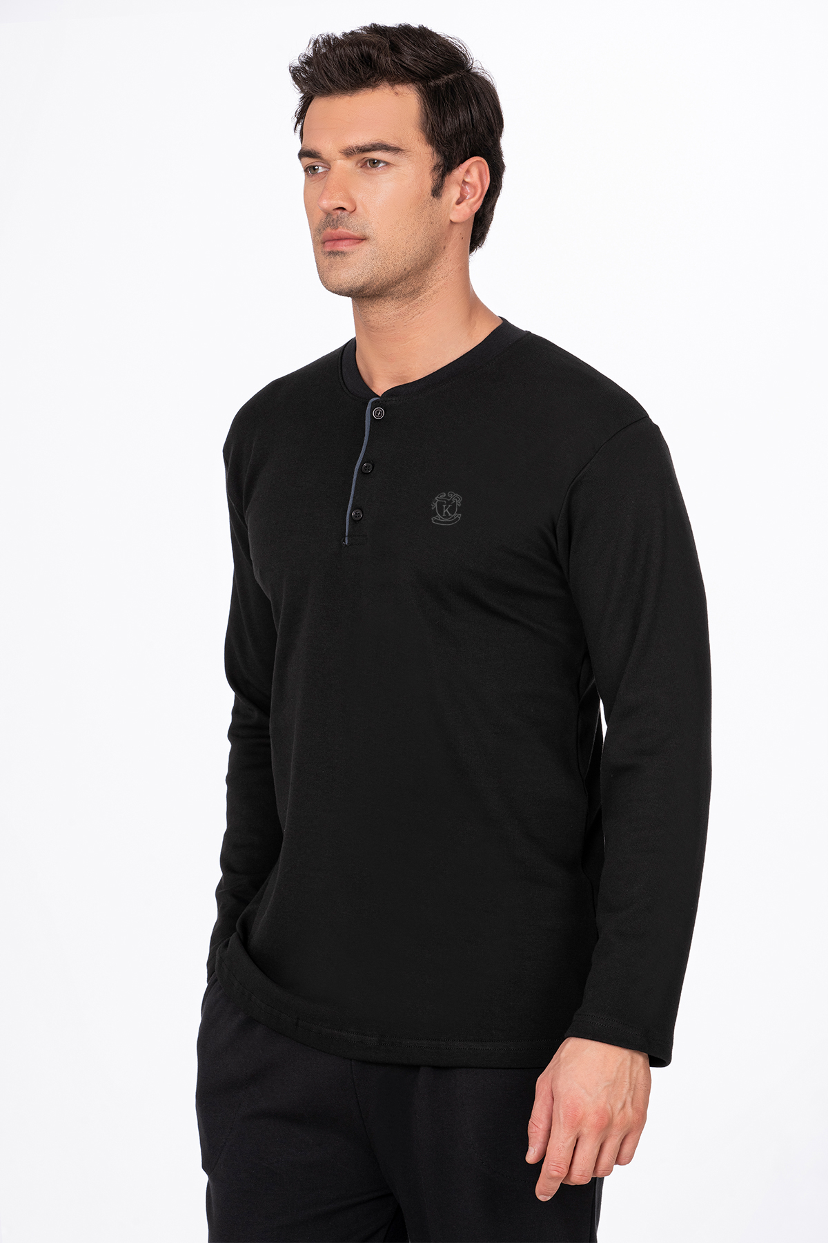 Erkek Düğmeli Yaka Pijama Takımı, sade ve modern tasarımıyla konforu ön planda tutar.