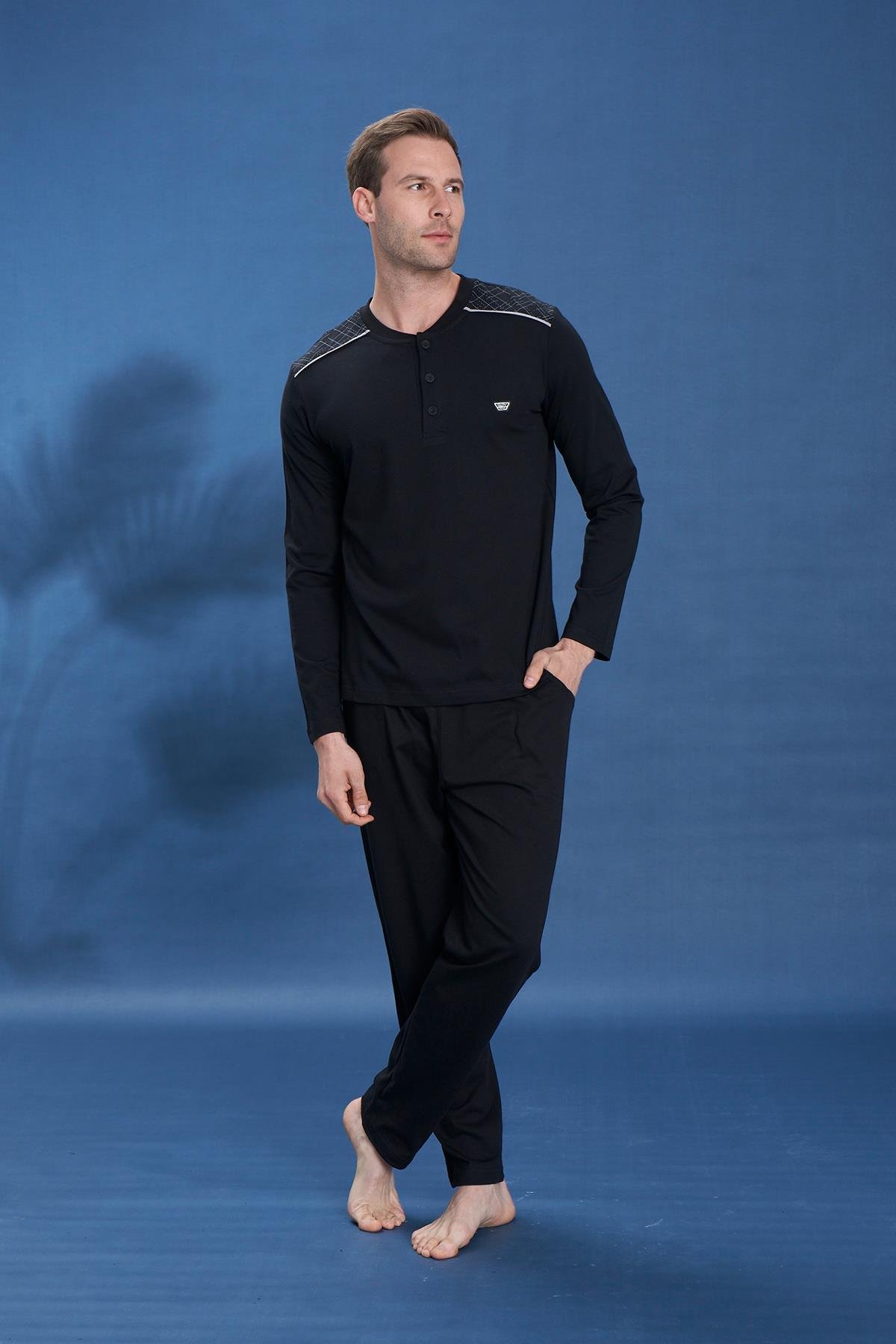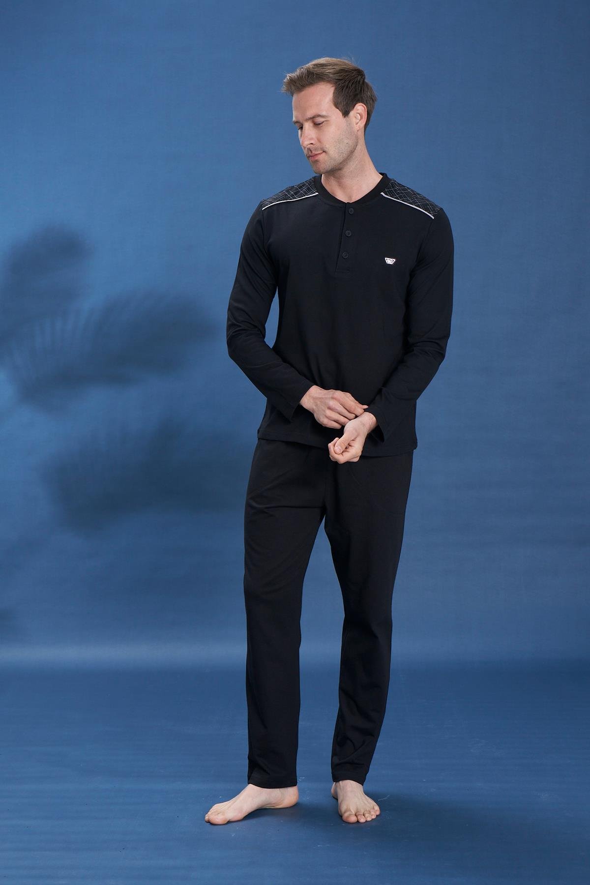 Zamansız siyah rengi ve modern detaylarıyla öne çıkan Erkek Süprem Genç Önü Patlı Pijama Takımı, hafifliği ve konforlu yapısıyla günlük ev giyimi ve uyku için ideal bir tercihtir.