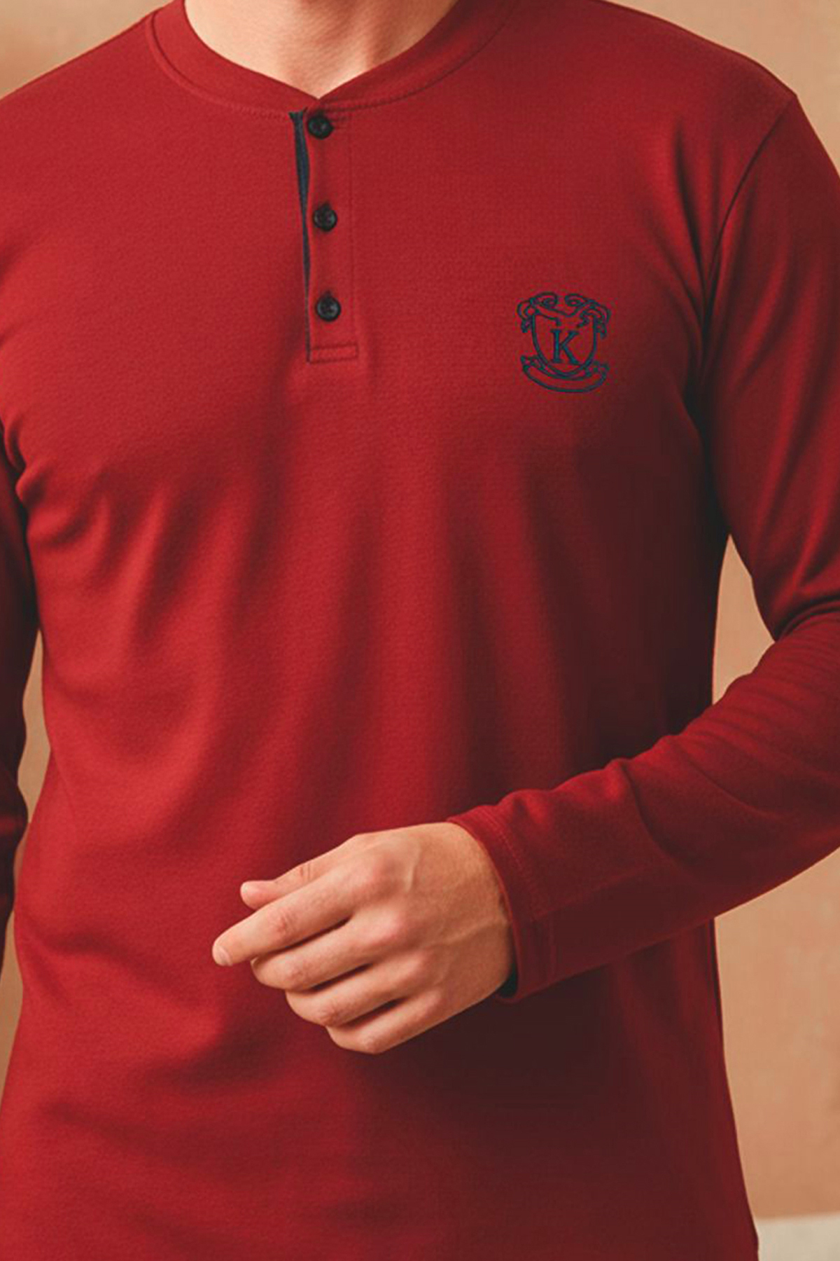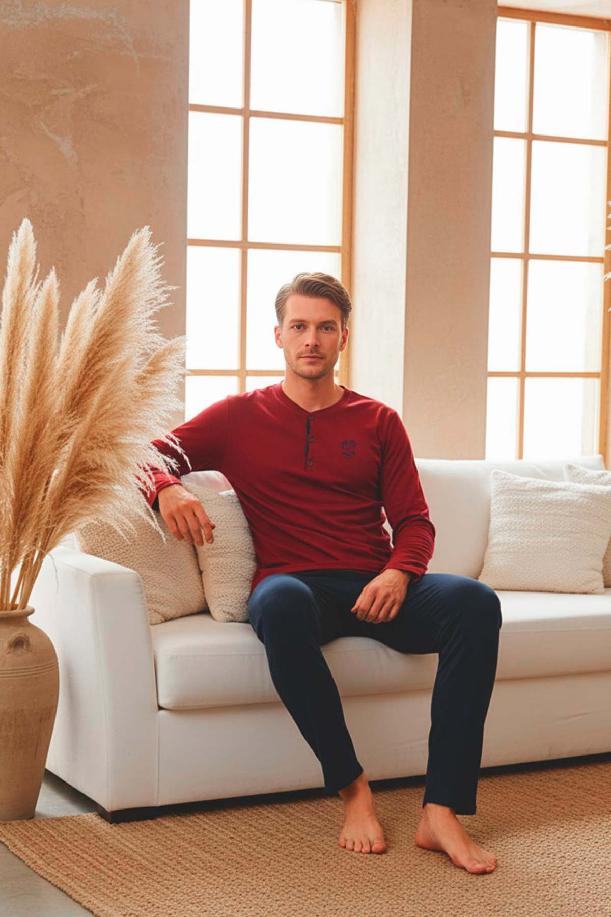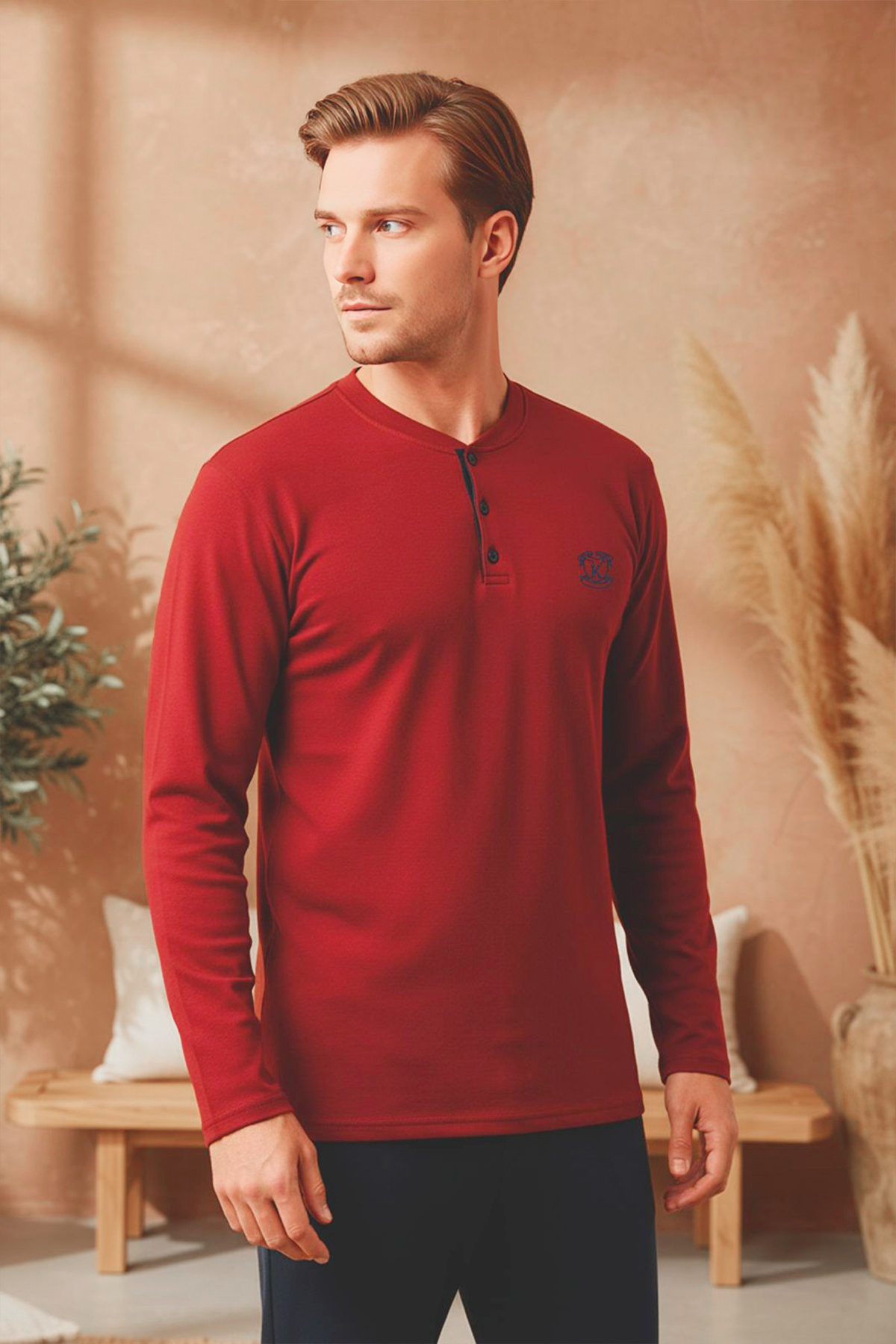 Erkek Uzun Kollu 4 Mevsim Penye Süprem Önü Patlı Pijama Takımı | Bordo 800 (1072171571)