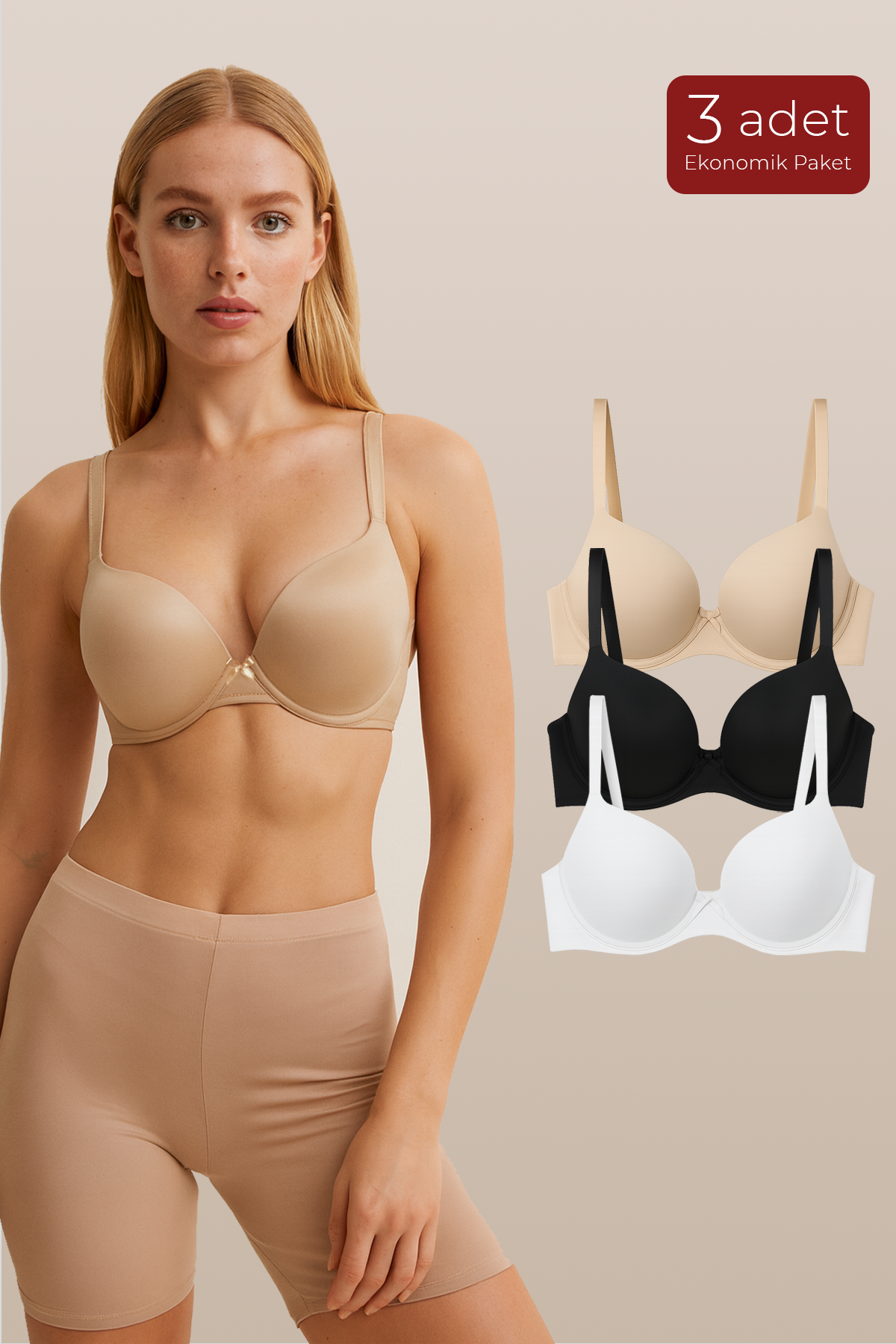Günlük kullanımda maksimum rahatlığı ve şıklığı bir arada sunan Kadın Basic B Kap Dolgusuz Sütyen 3’lü Paket, sade tasarımı ve işlevsel yapısıyla iç giyimde vazgeçilmeziniz olacak.