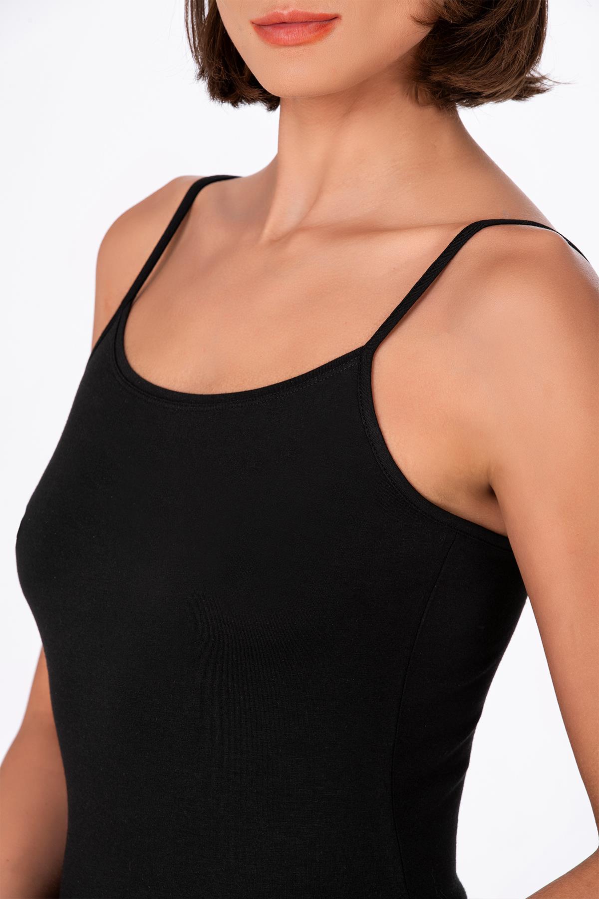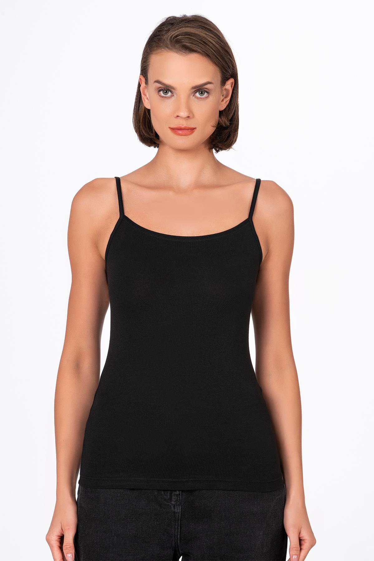 Kadın Esnek Rahat Biyeli İp Askılı Pamuklu Modal Atlet | Siyah K24264 (2160300022)
