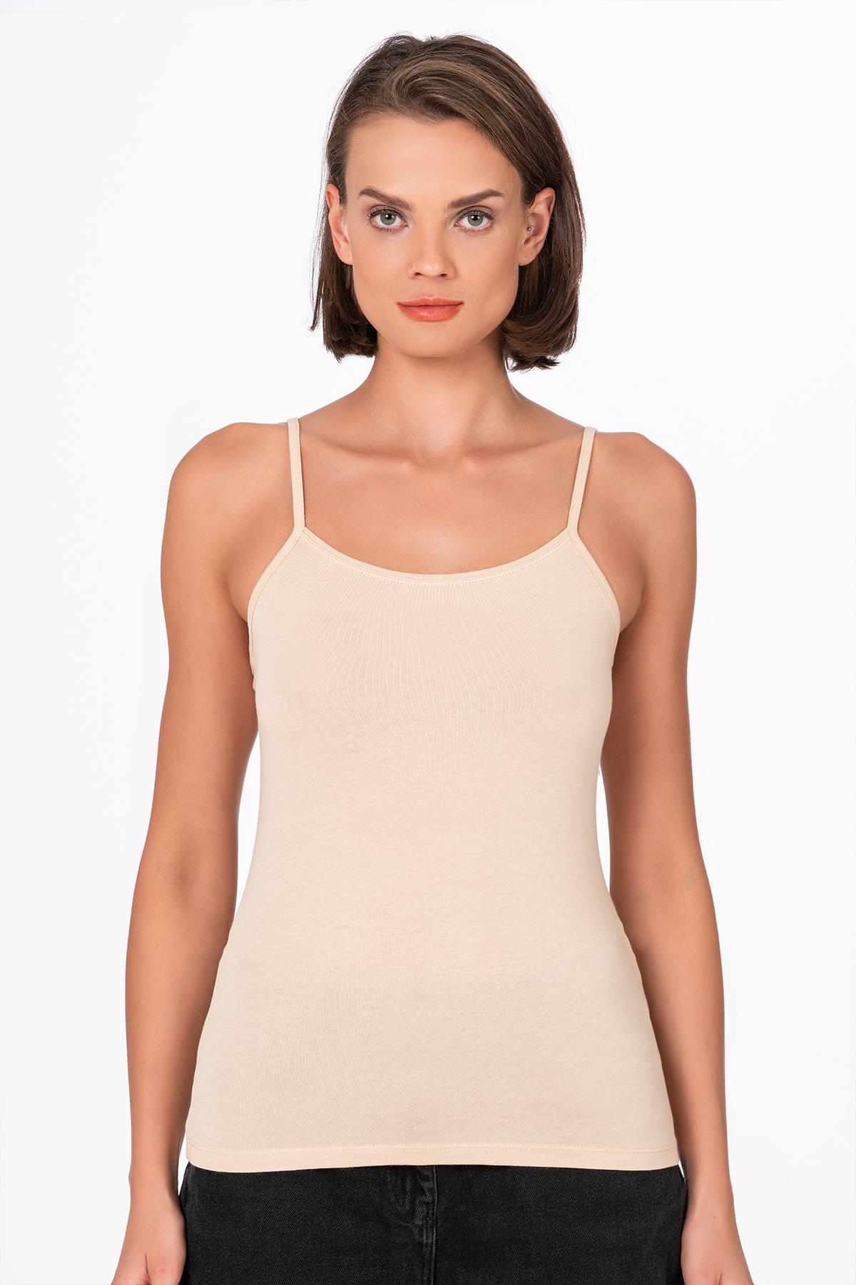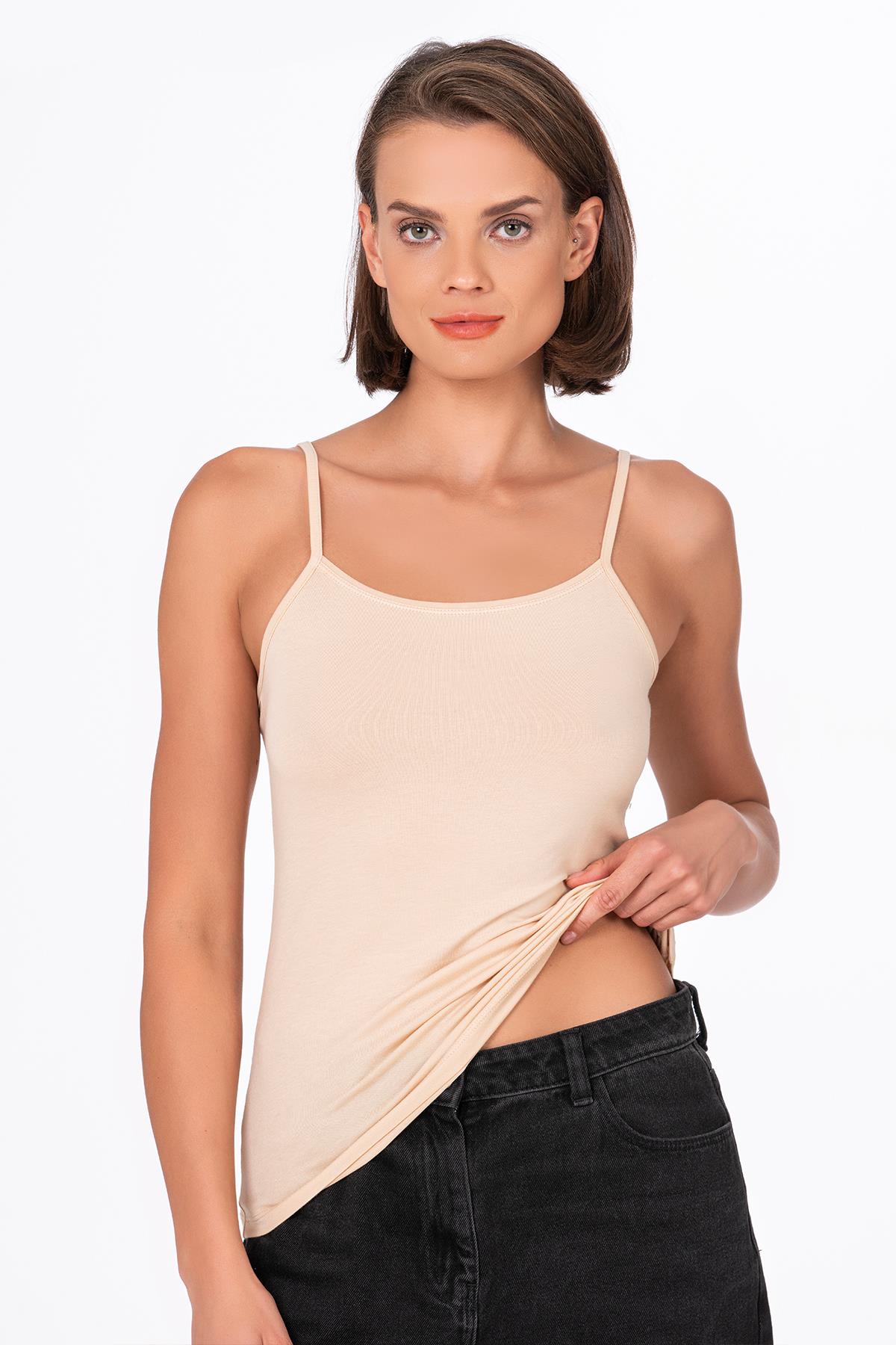 Kadın Esnek Rahat Biyeli İp Askılı Pamuklu Modal Atlet | Ten K24264 (2160300022)