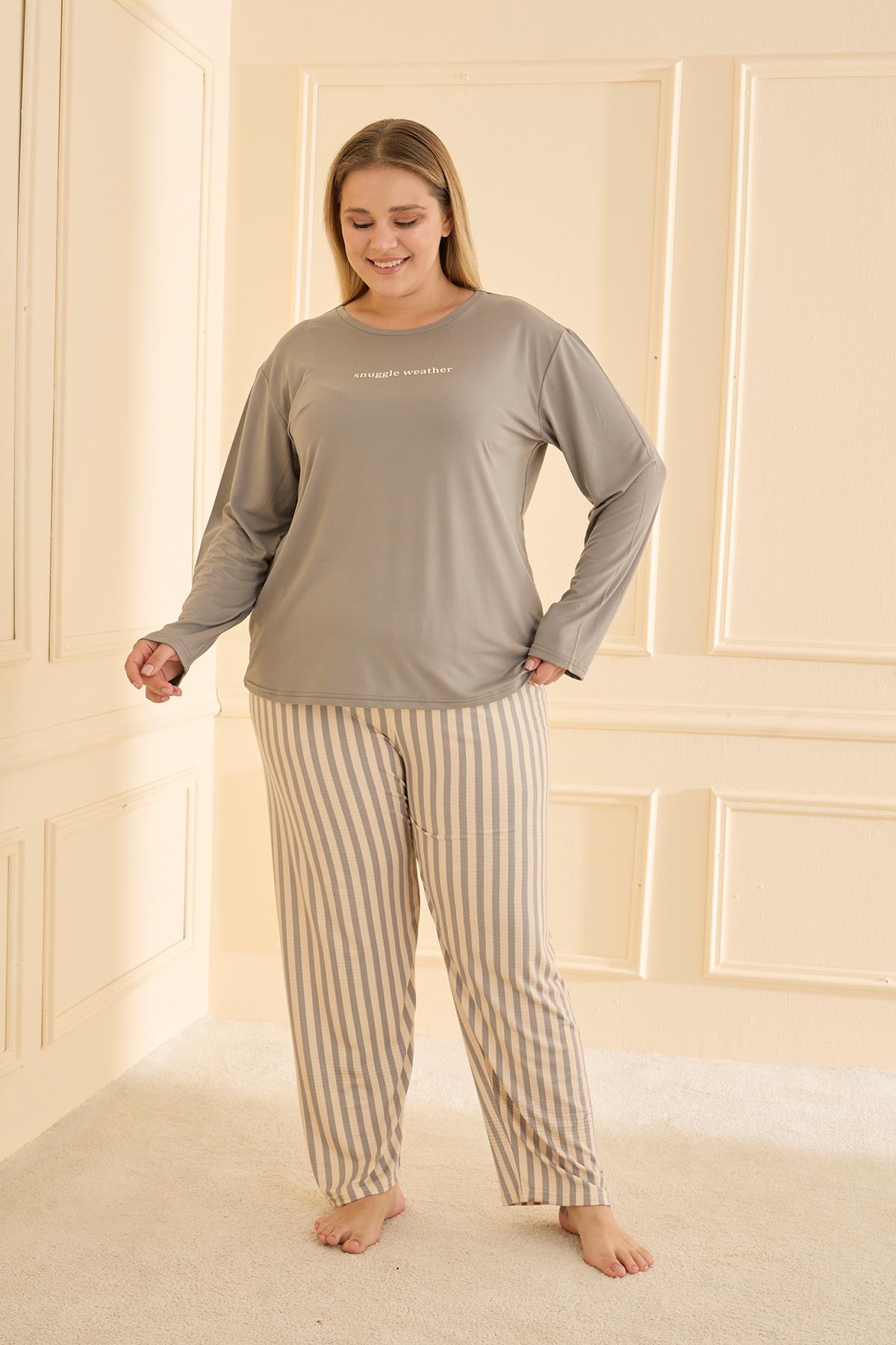Kadın Milan Battal Bisiklet Yaka Takım | Gri 50802-2407 (2072177089)