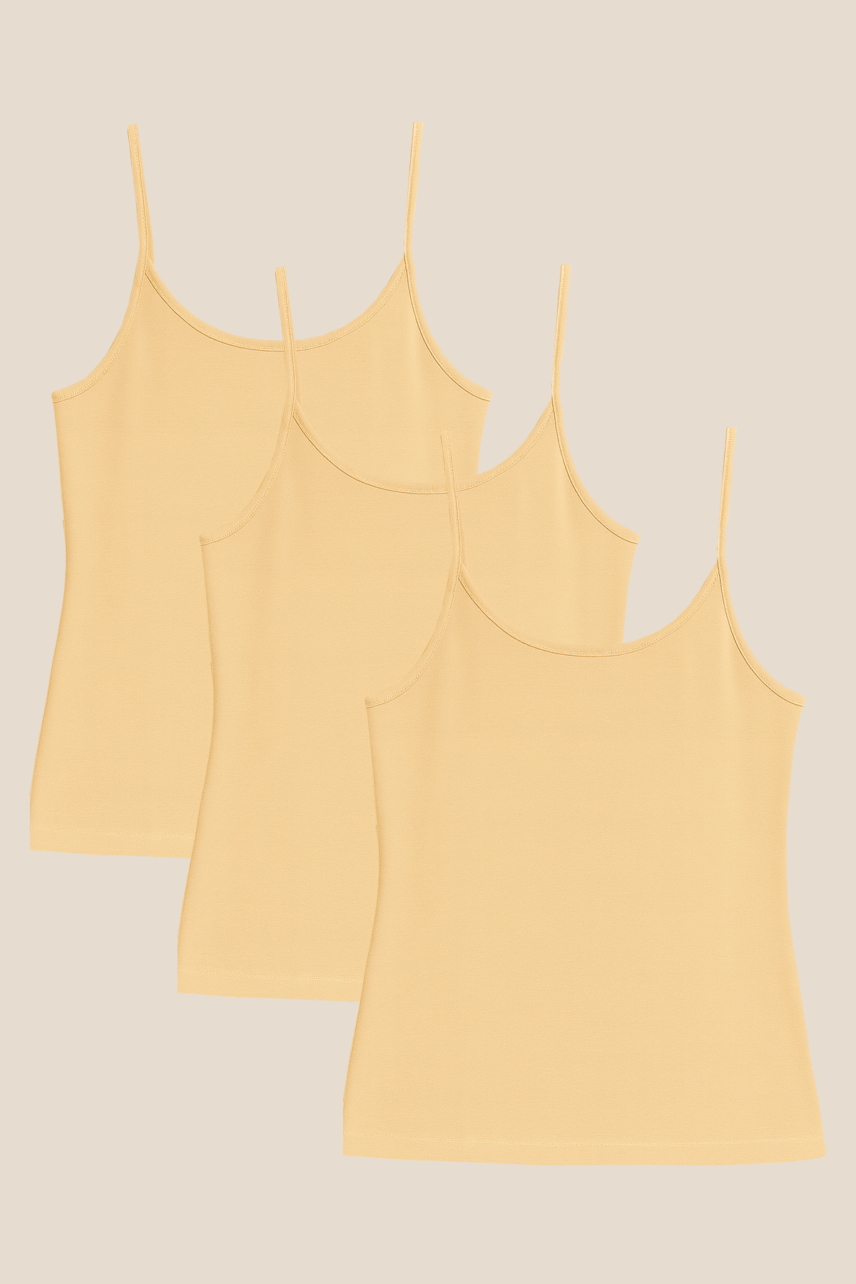 Kadın Pamuklu Ribana İp Askılı Klasik Atlet 3'lü Paket – Esnek & Rahat | Ten K0107
