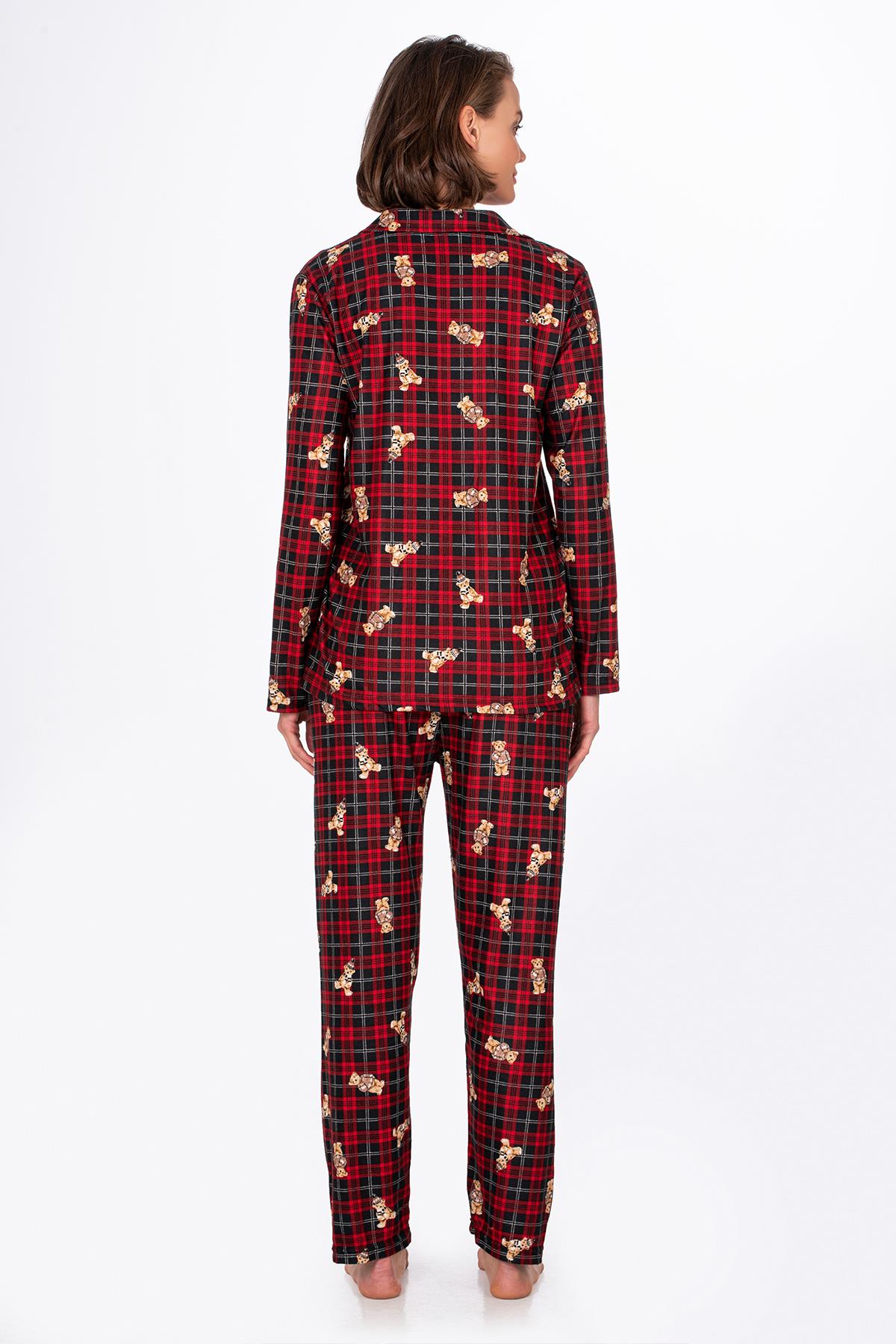 Kadın Süet Önden Düğmeli Pijama Takımı | Ayıcık Desen (2071060014)