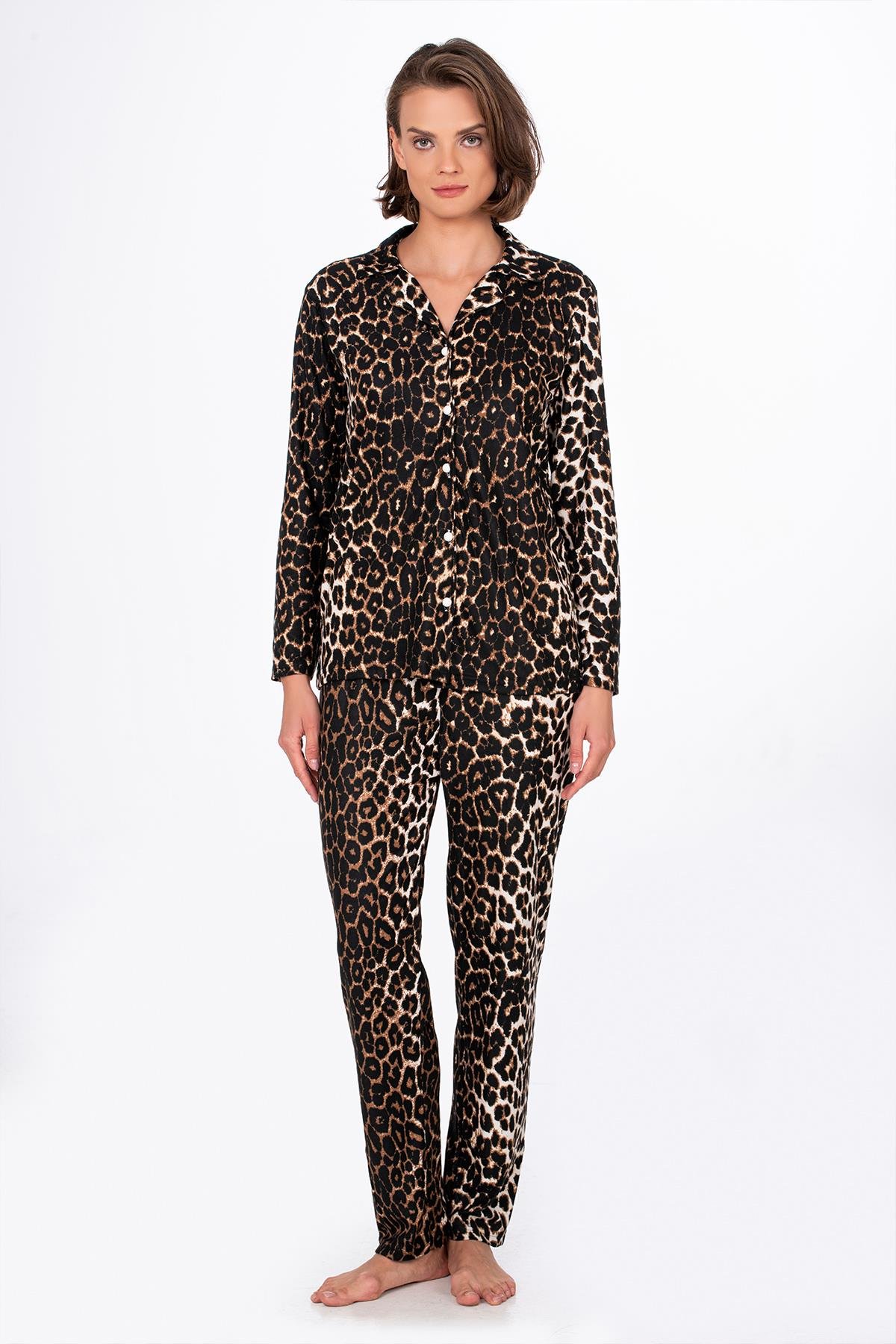 Kadın Süet Önden Düğmeli Pijama Takımı | Leopar (2071060014)