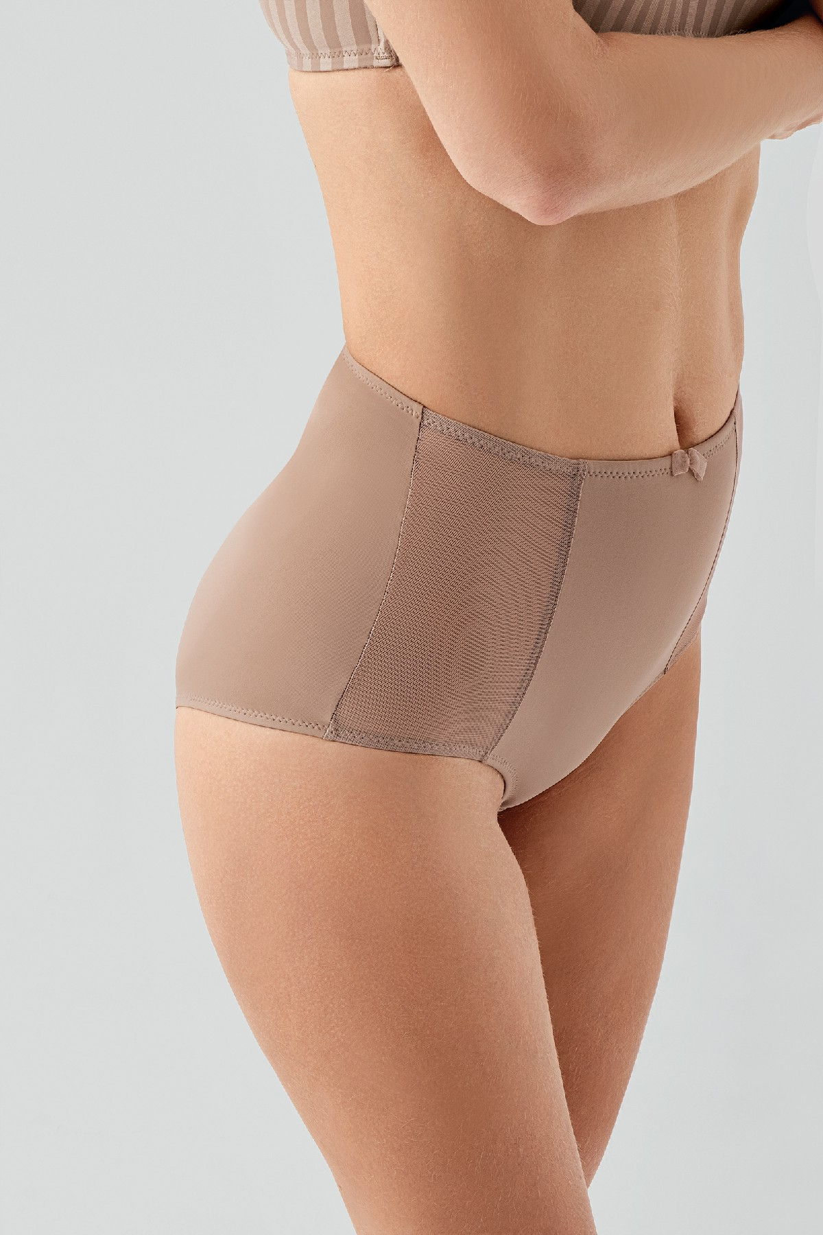 Kadın Tül Detay Yüksel Bel Korseli Bato Külot | Cappuccino 9304 (2101810014)