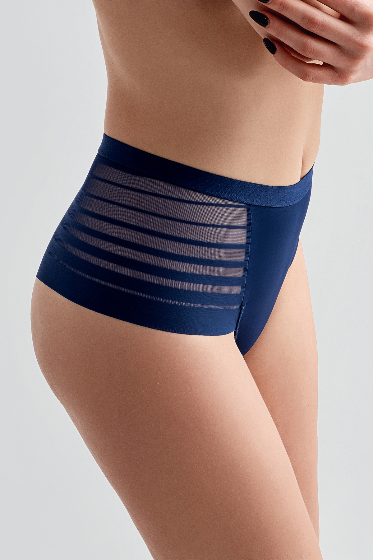 Kadın Yüksek Bel Tül Detay Brazilian Külot | Lacivert 9302-A (2101810011)