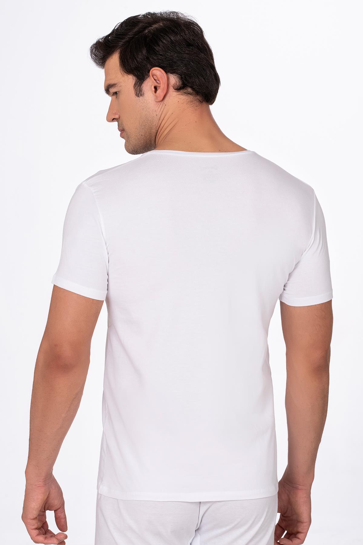 Pamuklu Modal V Yaka Kısa Kollu Tişört Fanila | Beyaz K11143